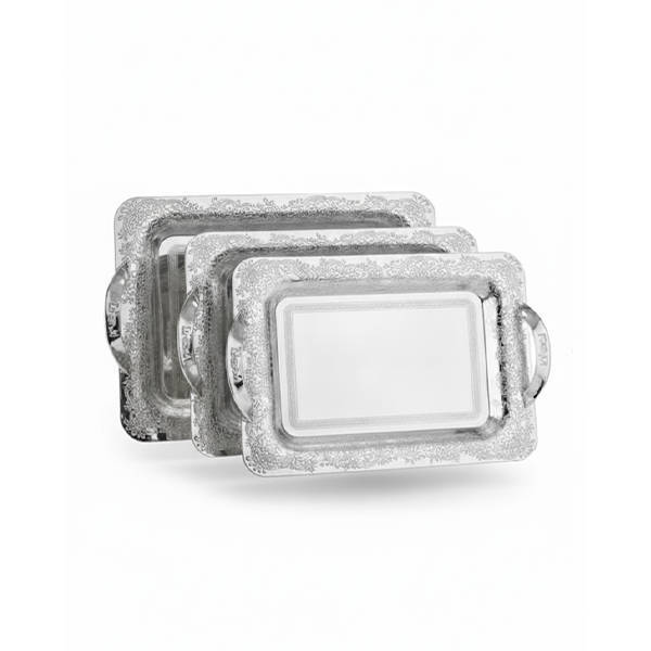 طقم صواني تقديم ارشيا 2 قطعة لون فضي - T09